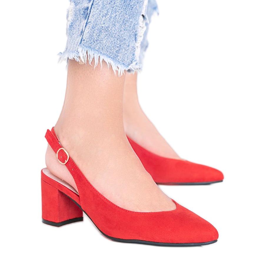Red Petty salonke na visoku petu savršen su izbor za žene koje svojim ljetnim stajlinzima žele unijeti malo boje i elegancije. Zahvaljujući otvorenom stražnjem dijelu gornjeg dijela, ove pumpe pružaju izvrsnu ventilaciju i udobnost, što ih čini savršenim za tople dane. Prekrasna, intenzivna nijansa crvene u prekrasnom je kontrastu s jednostavnim krojem, što ove cipele čini upečatljivim i univerzalnim dodatkom mnogim odjevnim kombinacijama.