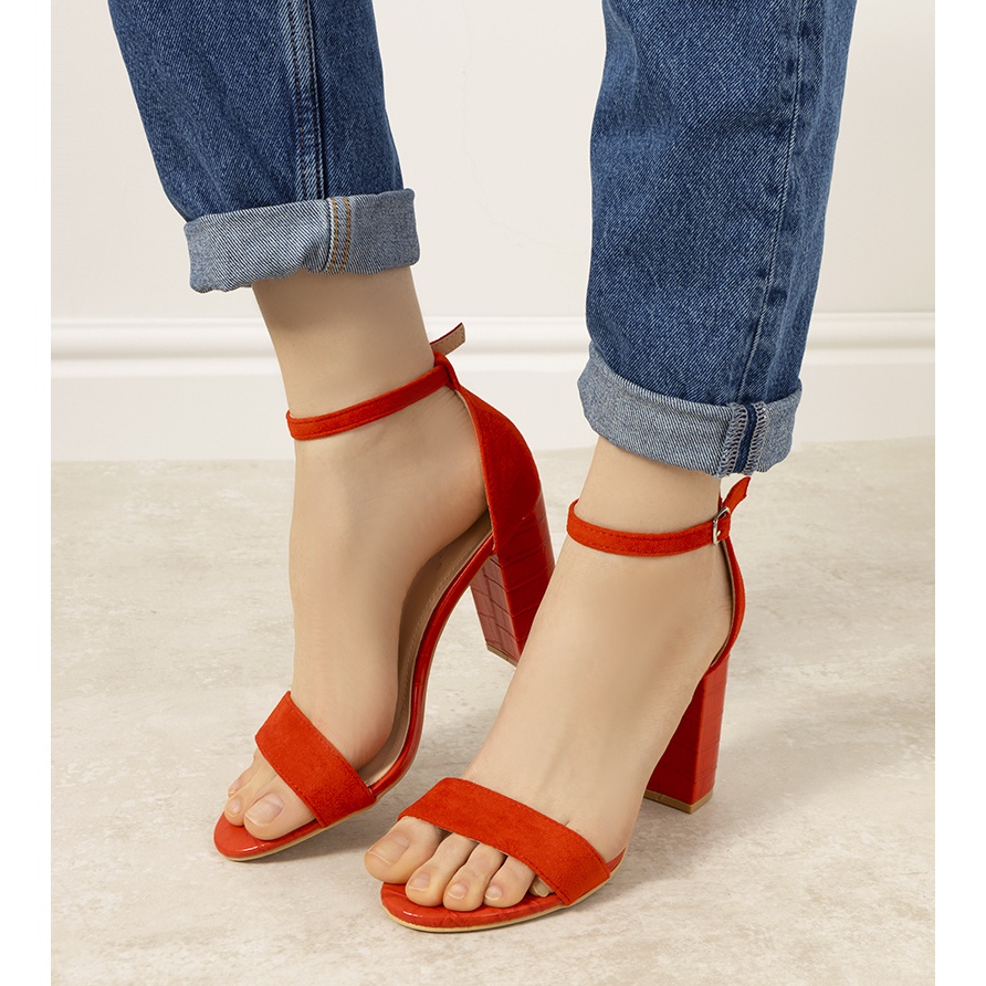 Detalji: BM Crvene pumpice na stupić s Dolores zmijskim uzorkom crvena