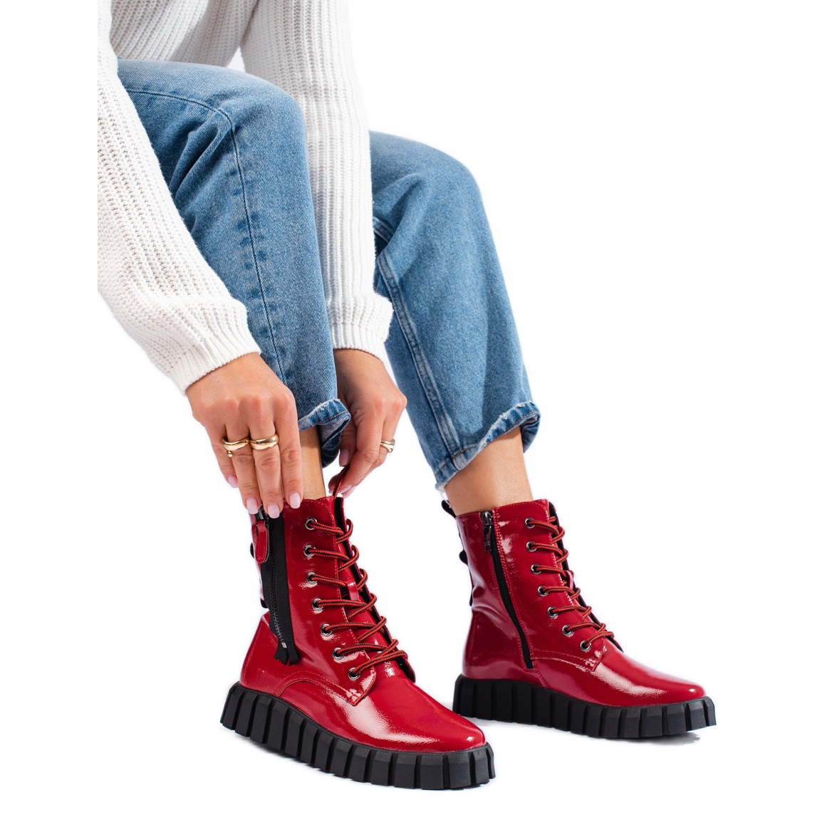 Otkrijte unikatne crvene platformke proizvođača W. Potocki koje savršeno odgovaraju aktualnim trendovima. Ove ženske gležnjače spajaju casual i rock stil, savršene za sezonu jesen/zima. Izrađene od visokokvalitetne lakirane ekološke kože, nude ne samo atraktivan izgled, već i udobnost nošenja.