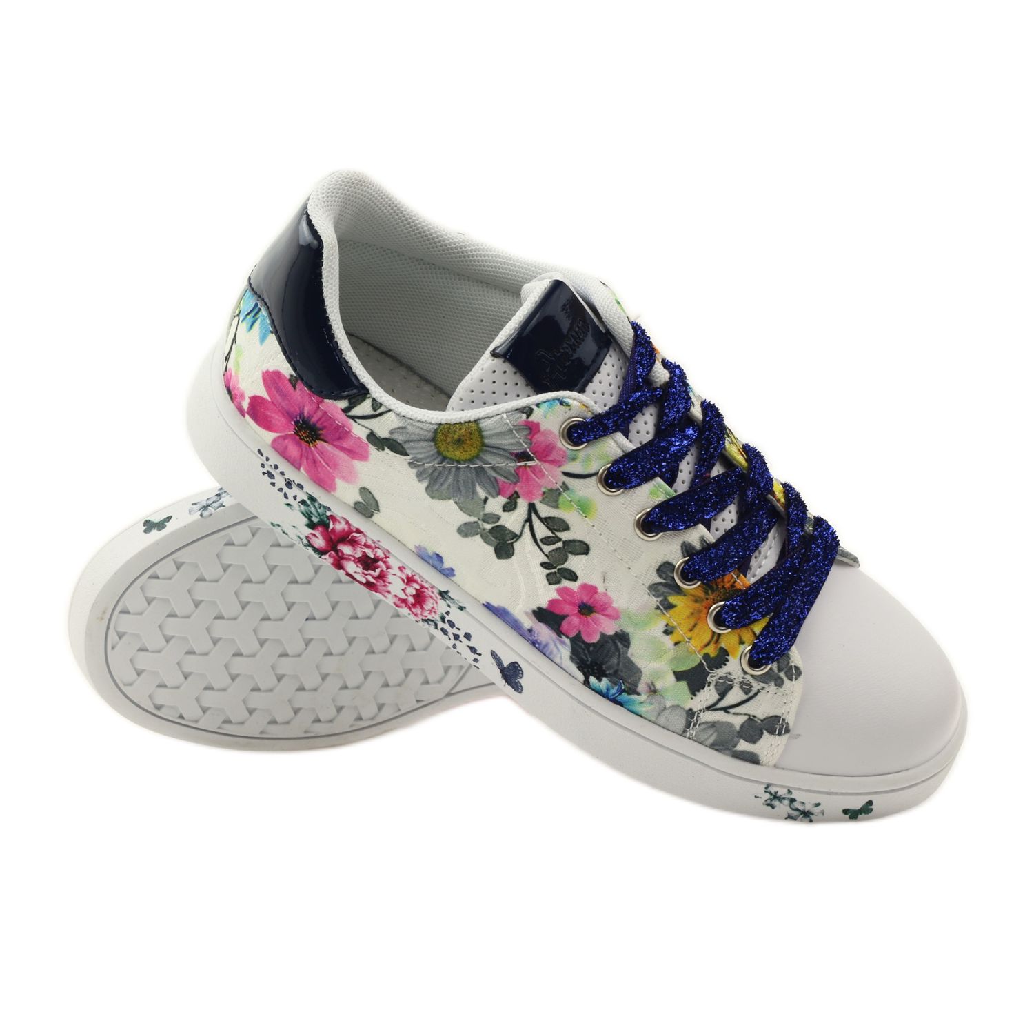 American Club American Club Cvjetne američke tenisice s kožnim umetkom mornarsko plava ružičasta bijela
