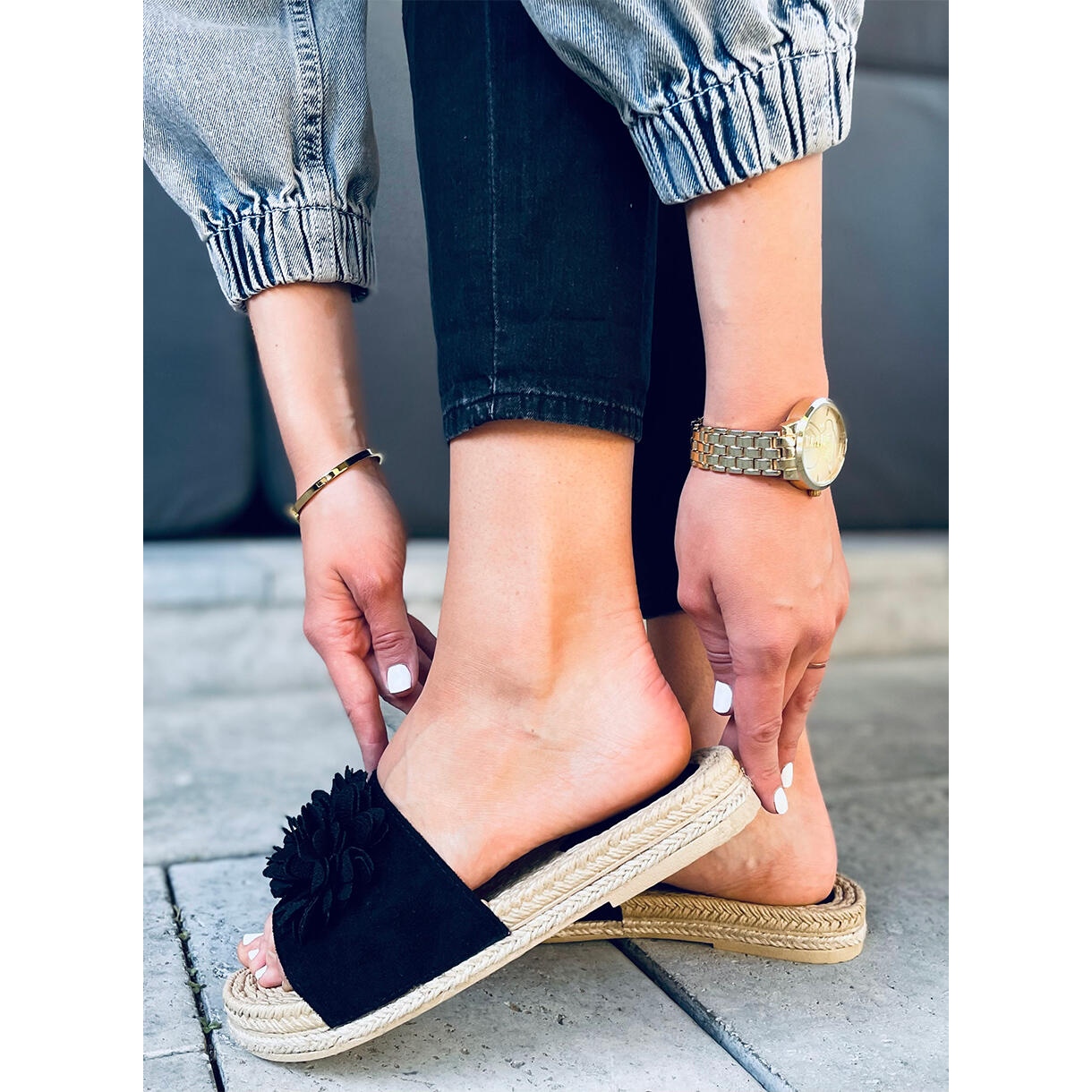 Ove japanke savršeno pristaju uz različite odjevne kombinacije - od prozračnih haljina do ležernih kratkih hlačica. Njihova klasična crna boja čini ih iznimno univerzalnima, a izražajan cvjetni uzorak dodaje svježinu i lakoću.