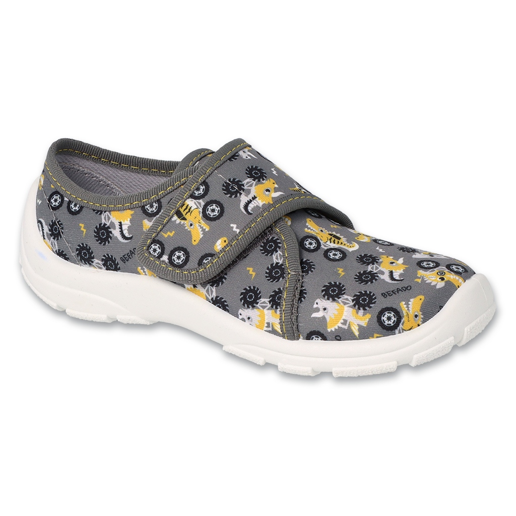 Odabirom dječje obuće Befado 974X552 odabirete proizvod koji spaja stil, udobnost i najvišu kvalitetu izrade. Sive papuče sa žutim detaljima zasigurno će vašem djetetu postati omiljeni komad odjeće, a vi ćete moći mirno spavati znajući da se njegova stopala razvijaju zdravo i primjereno. Bez obzira jesu li ovo prvi koraci ili još jedan dan pun dječjih avantura – Befado je uvijek dobar izbor.