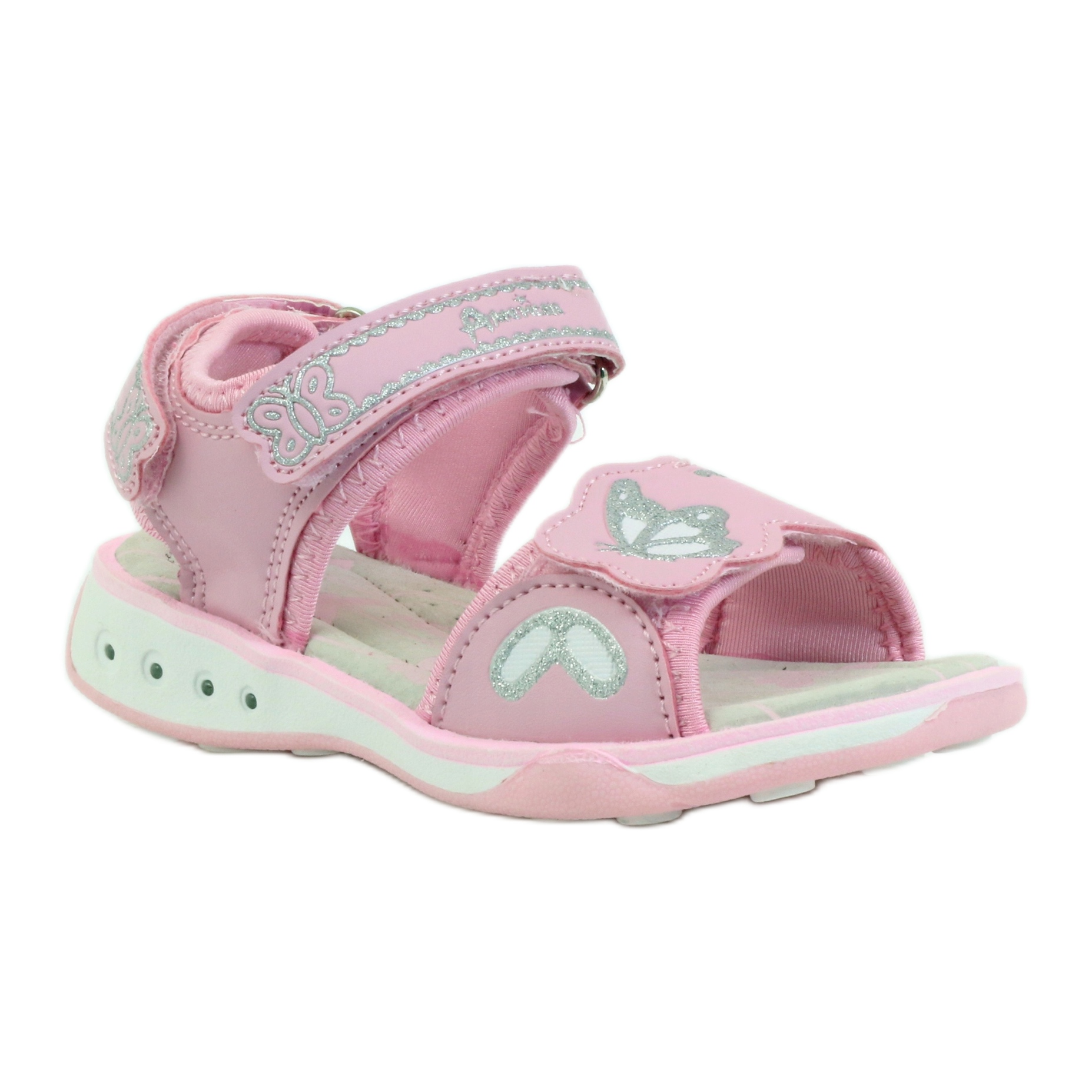 American Club American Club Dječje cipele sandale kožni uložak svijetleći američki ružičasta siva