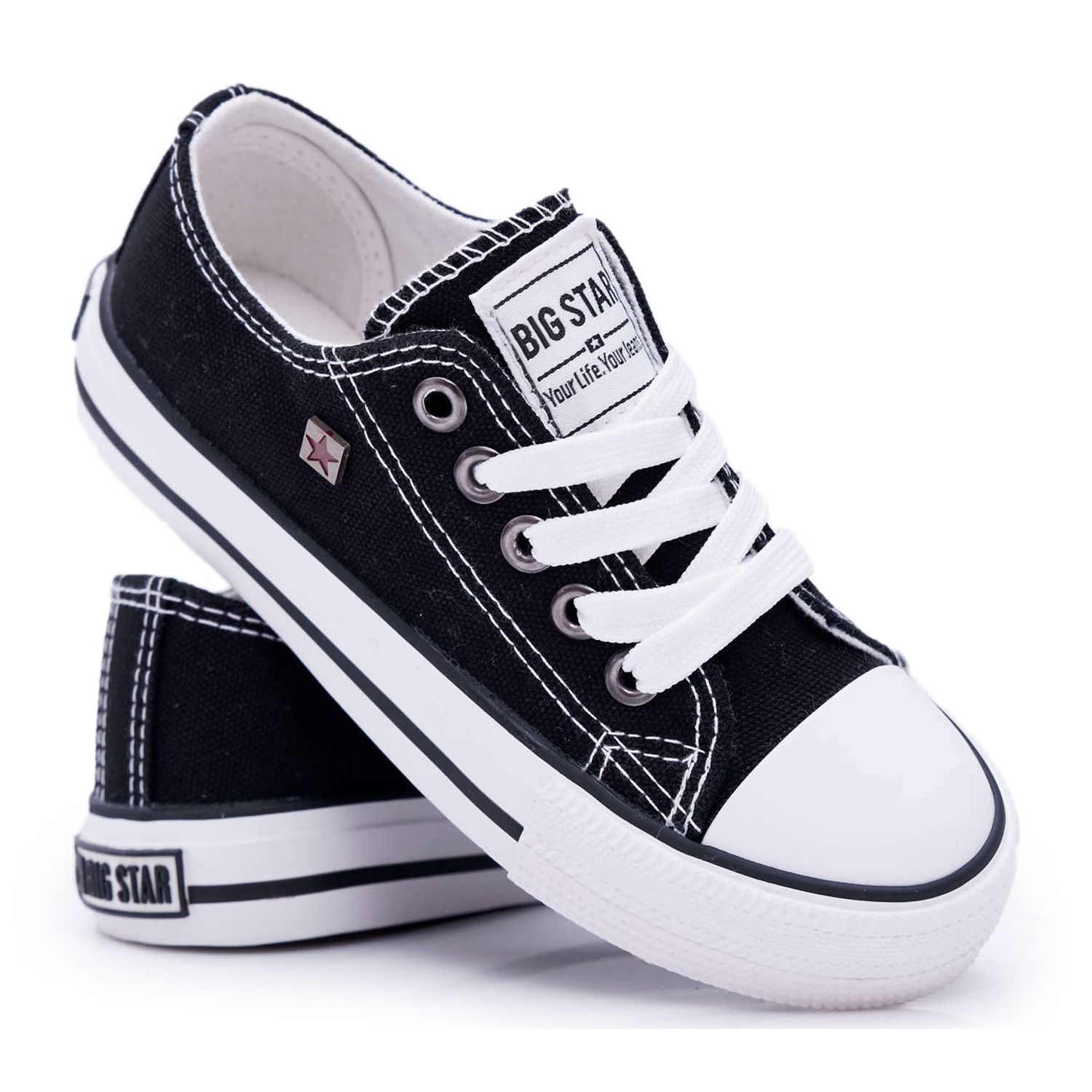 Big Star tenisice sinonim su za svestranost - savršene su kao element svakodnevne kombinacije za školu, igralište ili obiteljska putovanja. Njihova bezvremenska kombinacija crne i bijele čini ih lakim za kombiniranje uz mnoge vrste odjeće, kako za dječake tako i za djevojčice.