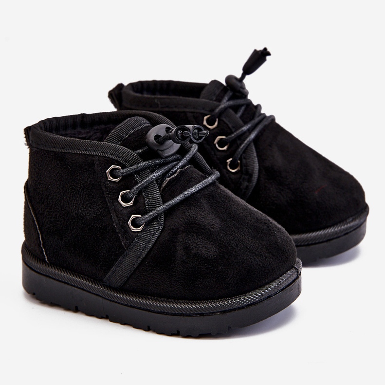 Dječje čizme na čipku na snijeg zagrijane krznom Black Hunter crna crna