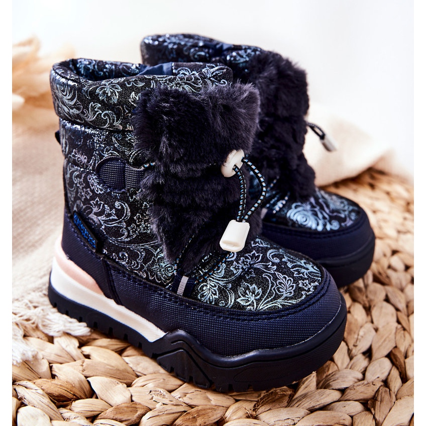 PJ2 Dječje čizme s toplim snijegom s krznom Navy Blue Dessa bijela tamnoplava