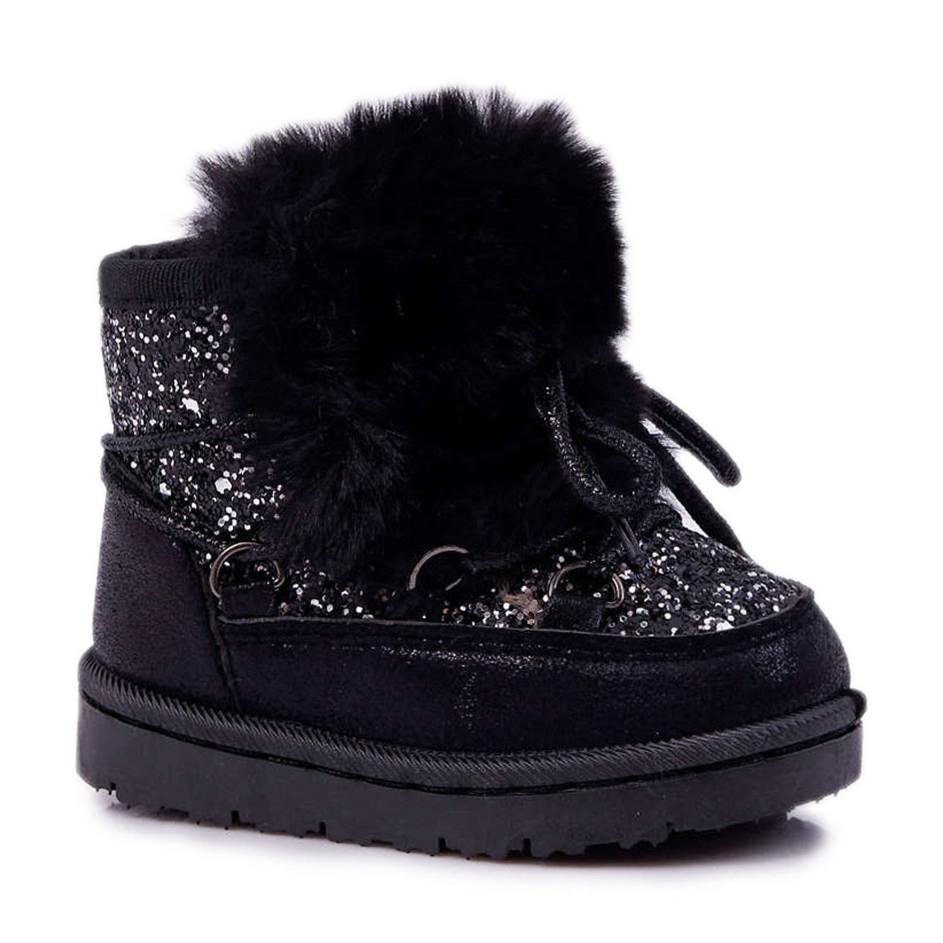 Zahvaljujući kopčanju na čipku, čizme savršeno prianjaju uz gležanj, osiguravajući stabilnost i udobnost pri svakom koraku. Krzno koje okružuje gornji dio i suptilna svjetlucava prašina dodaju šarm i jedinstvenost, čineći da se vaša mala fashionistica ističe iz gomile.