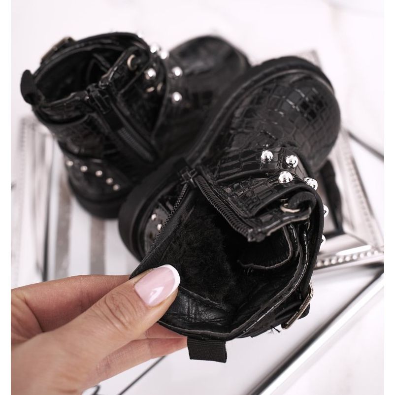 Detalji: FRROCK Dječje čizme zagrijane krznom, lakirane crne Marije crno