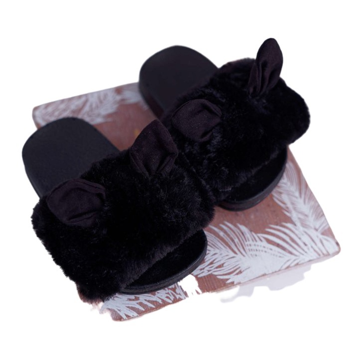FRROCK Dječje papuče s krznom i oštećenjem Crna Thoa