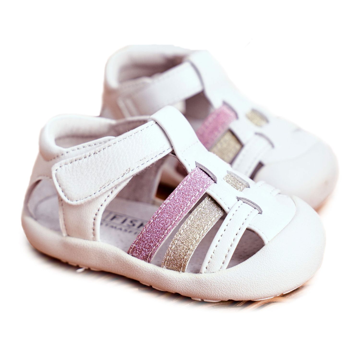 Apawwa Dječje sandale s čičak sjajnim bijelim Ontarioom bijela ružičasta zlatni