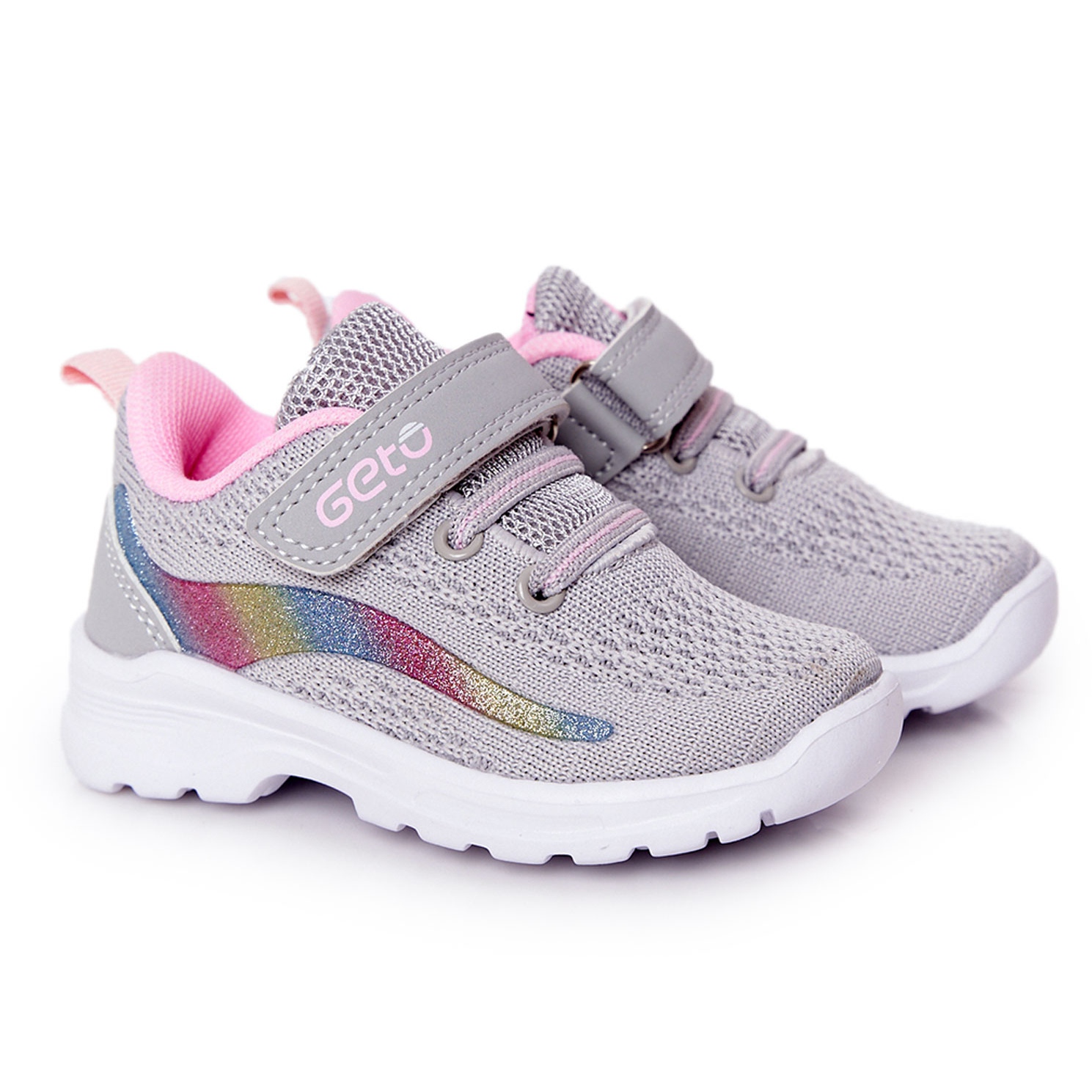 Predstavljamo dječju sportsku obuću, Ready Go tenisice! u modernim sivim i ružičastim bojama s mnogo šarenih akcenta. Ove elegantne cipele, pričvršćene čičkom, spajaju funkcionalnost i moderan dizajn, savršene za aktivne djevojke.