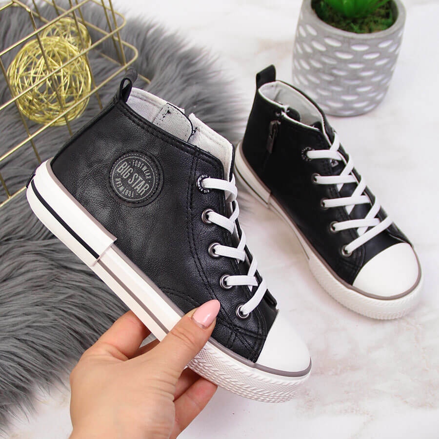 Dječje tenisice Eco Leather Black Big Star II374003 - Udobnost i stil svaki dan. Ove visoke tenisice iz marke Big Star kombiniraju klasični izgled s praktičnim rješenjima, čineći ih da rade tijekom igranja i u šetnji.