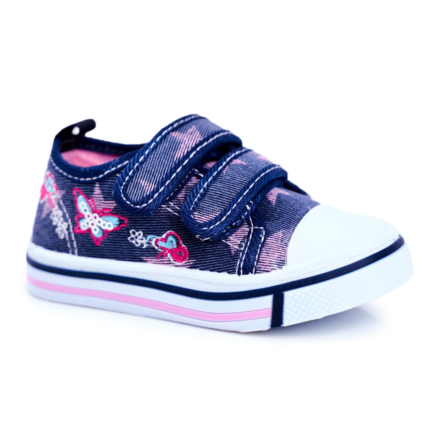 **Le Scarpe dječje tenisice na čičak tamnoplave Junalo Pink**