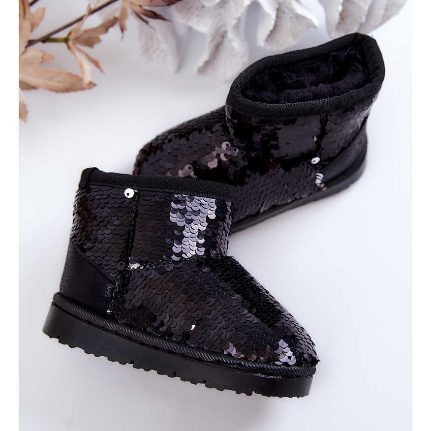 FR1 Dječje tople čizme za snijeg sa šljokicama Black Shard crna