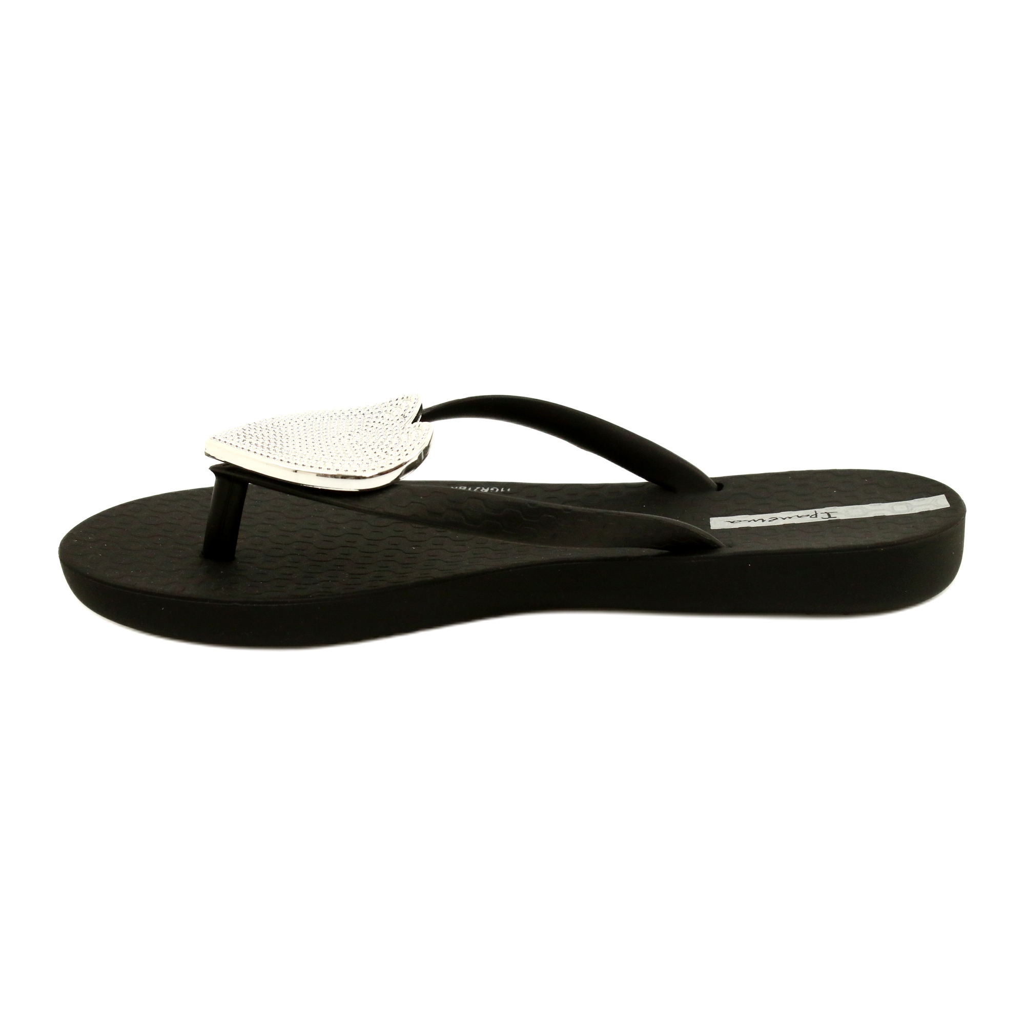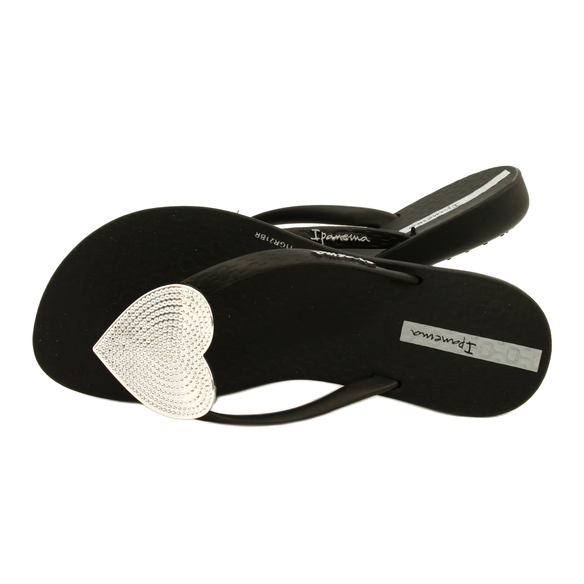 Crne dječje japanke MAXI FASHION Ipanema 82598 sa srcem savršen su izbor za male ljubitelje elegantnih dodataka i udobne obuće. Izrađene od visokokvalitetne gume, nude ne samo moderan izgled, već i maksimalnu udobnost korištenja. Crni potplat u kombinaciji sa šarmantnim srebrnim ukrasom u obliku srca čini japanke elegantnima i praktičnima.