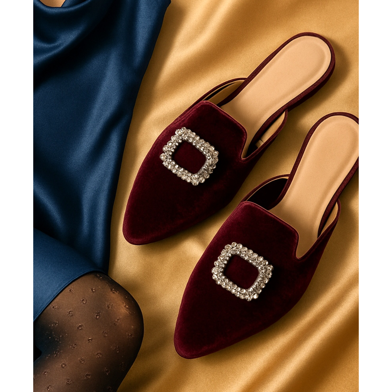 Za one hrabrije nudimo mule od baršuna ili satena s kopčom za nakit. Iako mogu djelovati "skliski", u kombinaciji s dugom slip haljinom stvaraju iznimno sofisticiran komplet. Samo ne zaboravite pripaziti na svoje tajice - ove godine moderne su one s uzorcima ili svjetlucavim nitima, koje će i zagrijati vaša stopala u hladnoj noći.