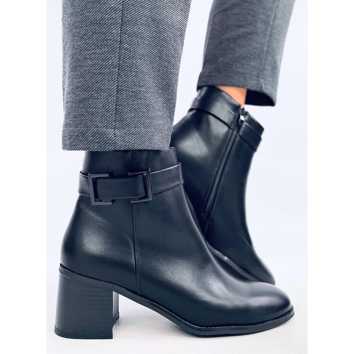 Njihova široka peta s visinom od 6 cm jamči stabilnost i udobnost nošenja cijeli dan. Zahvaljujući pričvršćivanju patentnih zatvarača sa strane, stavljanje i skidanje cipela postaje brzo i jednostavno. Zanimljivi detalji, poput okruglog nosa, daju im suptilnu eleganciju, a klasična crna boja osigurava svestranost - ove će se čizme podudarati s mnogim stilovima.