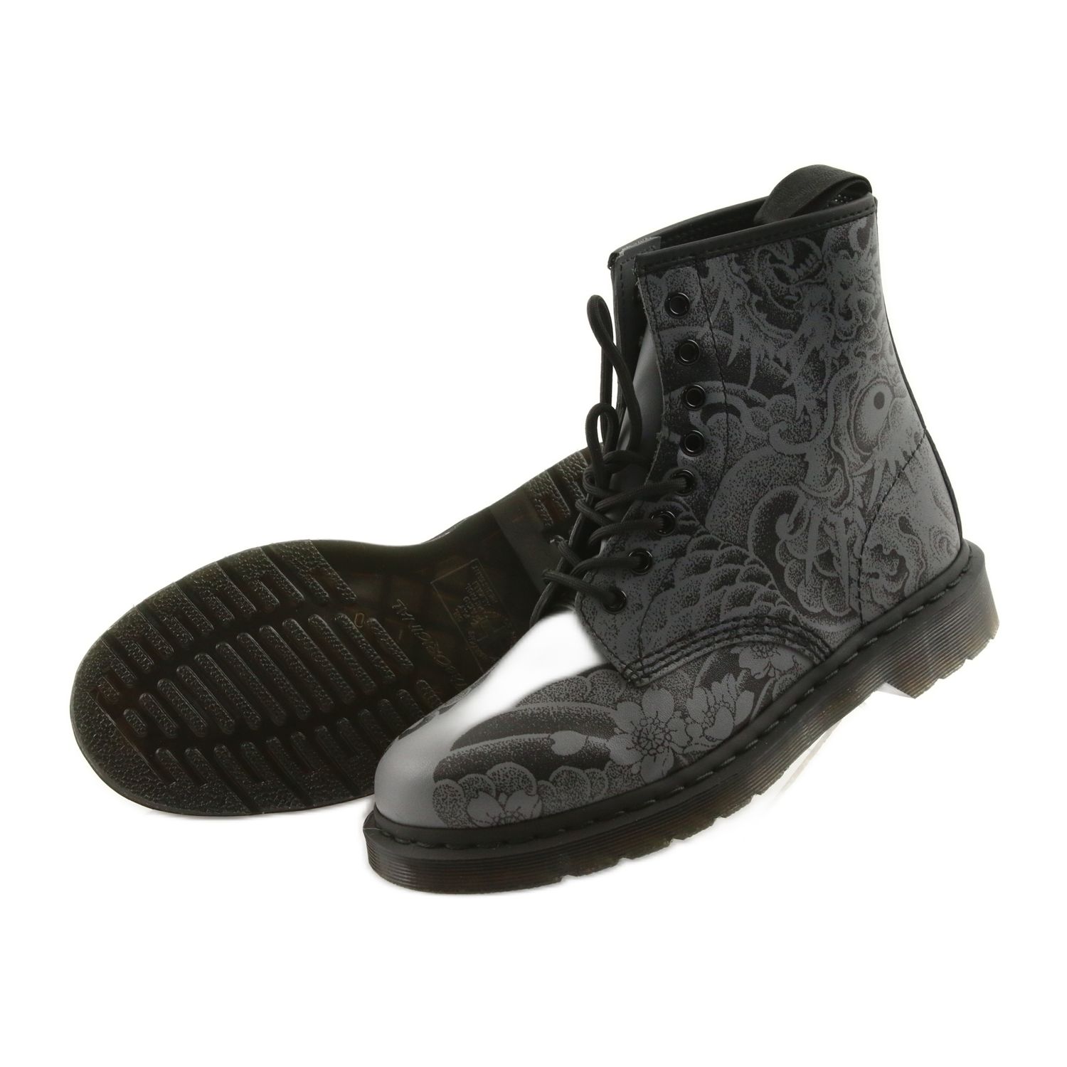 Upoznajte model Dr Martens 1460 OT BLACK - nezamjenjive gležnjače koje spajaju klasičan dizajn s daškom modernog. Inspirirane djelima japanskog tattoo umjetnika OT, ove jedinstvene čizme dostupne su u elegantnoj BLACK/GUNMETAL OT TATTOO BACKHAND boji, koja im daje karakter i izražajnost.