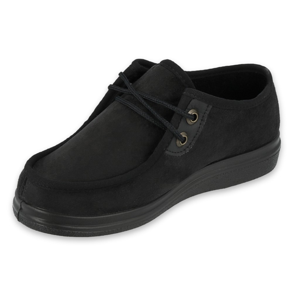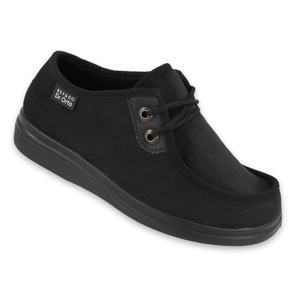 Model DR.ORTO Befado 871D004 je ženska obuća namijenjena osobama s osjetljivim stopalima i sindromom dijabetičkog stopala. Nježna unutarnja struktura od pjene i smanjeni broj šavova i spojeva smanjuju rizik od iritacije, a istovremeno pružaju meku i stabilnu potporu tijekom svakodnevne uporabe. Univerzalna crna boja i klasični, zaobljeni vrh čine cipele savršenim kako kod kuće tako i za kratke izlete vani.