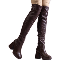 Inna marka Duge čizme na visoku petu od Lamis eko kože smeđa