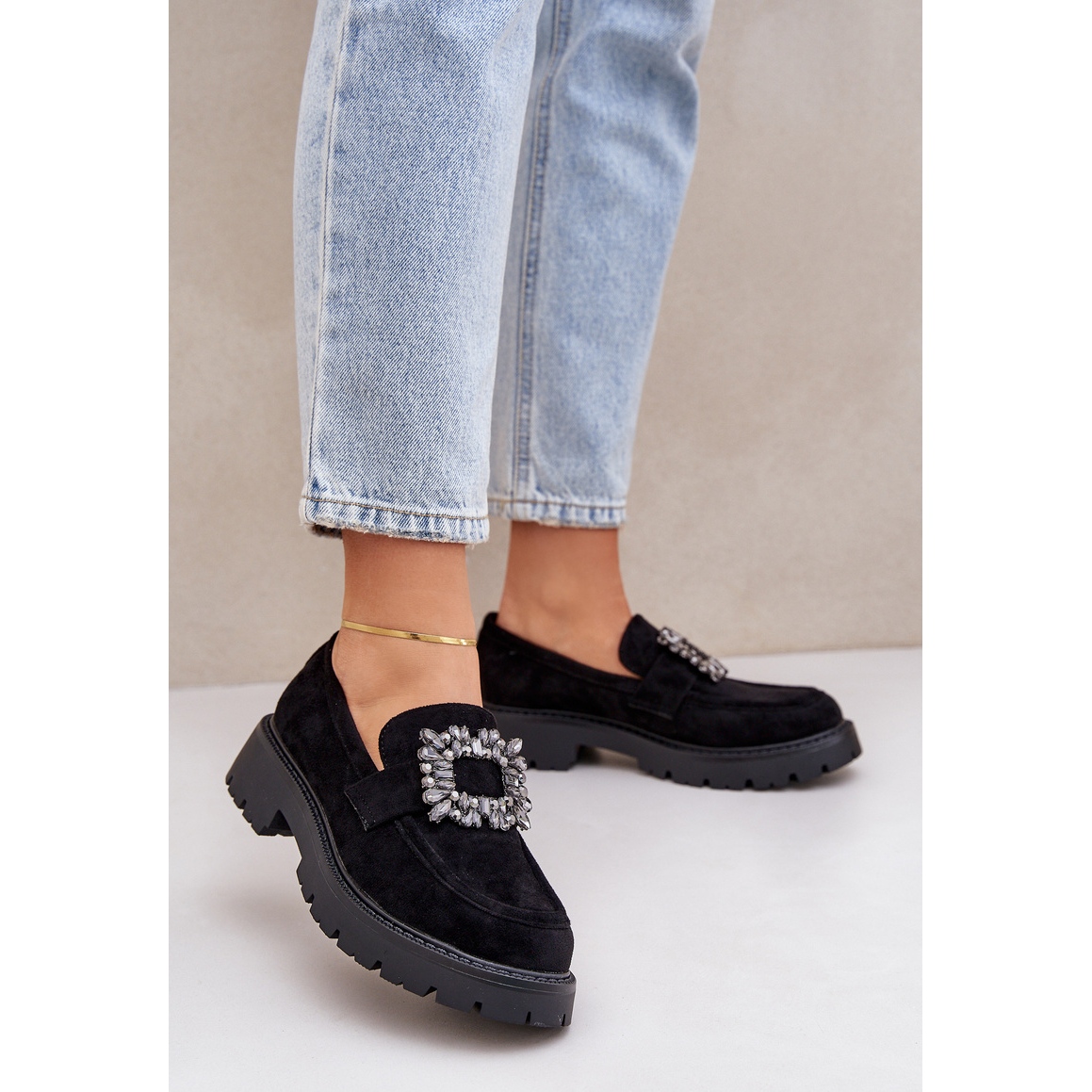Otkrijte eleganciju i utjehu s ekološkim mokasima iz Eco Suede u crnoj boji. Izrađene od ekološke antilop visoke kvalitete, ovi simpatični loaferi privlače oko ukrasnog broša koji im daje jedinstven karakter. Zahvaljujući visokoj peti visokoj 4 cm, ovaj model pruža izvanrednu udobnost tijekom cijelog dana, što ih čini savršenim izborom za proljetne dane.