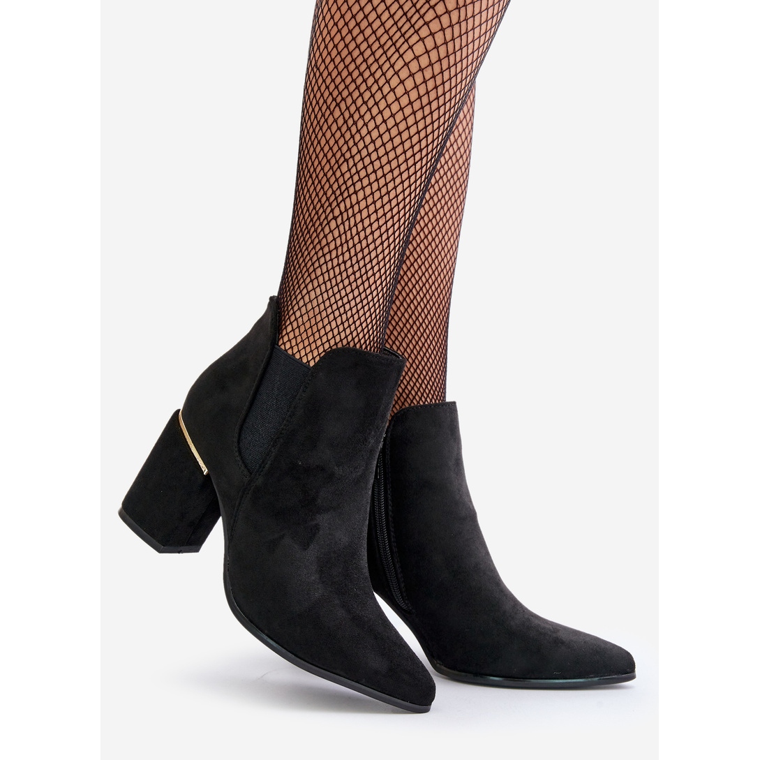 Izrađene od Eco Suedea na dodir, čizme se karakteriziraju visokom kvalitetom i marljivošću. Njihova ugradnja na čvrstu petu u obliku posta (visoka 8,5 cm) čini ih stabilnim i ugodnim za nošenje. Dodatna prednost je dvorac postavljen na bočnoj strani gornjeg dijela, što olakšava stavljanje i uklanjanje cipela. Učvršćena peta pruža odgovarajuću potporu i trajnost.