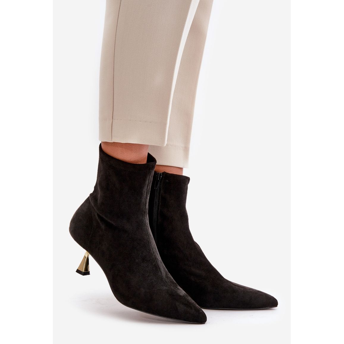 Zahvaljujući visini pete od 5 cm, možete uživati u ne samo izgledu, već i utjehu. Visina gležnja i širina od 11 cm čine čizme dobro prilagođene nozi. Ovaj je model dostupan u klasičnoj crnoj boji, što se dobro slaže s raznim odijelima.