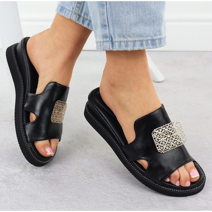 Eko-kože papuče na crnoj platformi s ukrasom Jezzi 2267 crna