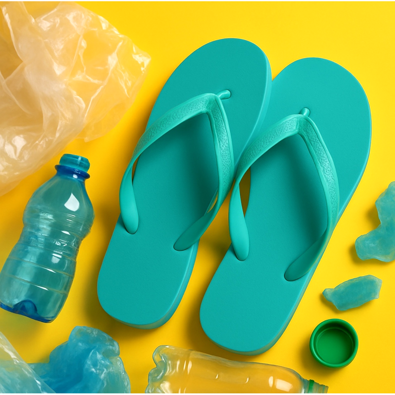Prema Sustainable Apparel Coalition, industrija obuće odgovorna je za približno 1,4% globalnih emisija stakleničkih plinova. Jedan par jeftinih plastičnih japanki je: