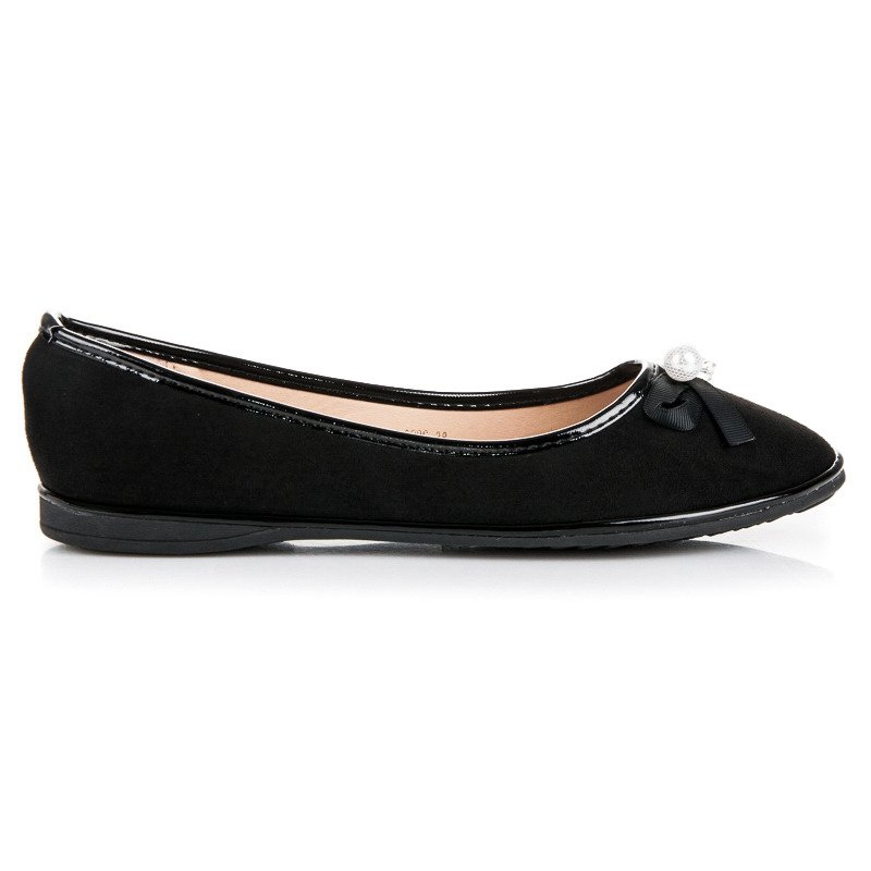 Elegantne crne balerinke od brušene kože Ideal Shoes nezaobilazne su u ormaru svake žene. Ove klasične natikače savršene su za ležerne stilove za proljeće i ljeto. Izrađene od visokokvalitetne ekološke kože, izvana i iznutra, osiguravaju udobnost nošenja tijekom cijelog dana.