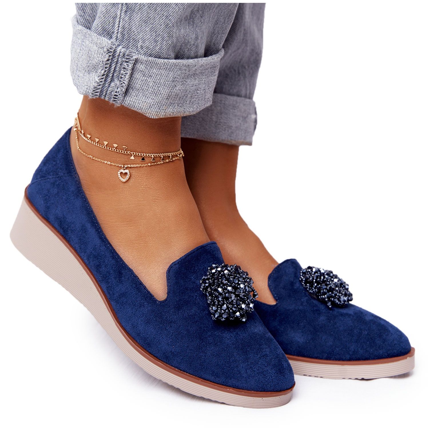 Elegantne cipele na klin Vinceza 10580 Suede Navy Blue tamnoplava