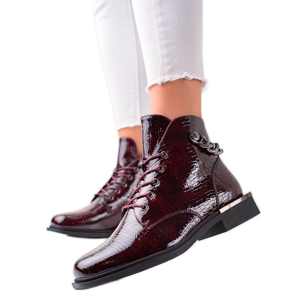 Elegantne lakirane gležnjače Sergio Leone u prekrasnoj bordo boji savršen su izbor za žene koje žele spojiti stil s udobnošću. Savršene kako za svakodnevnu upotrebu tako i za posebne prilike, ove gležnjače savršeno se uklapaju u ležeran i elegantan stil.