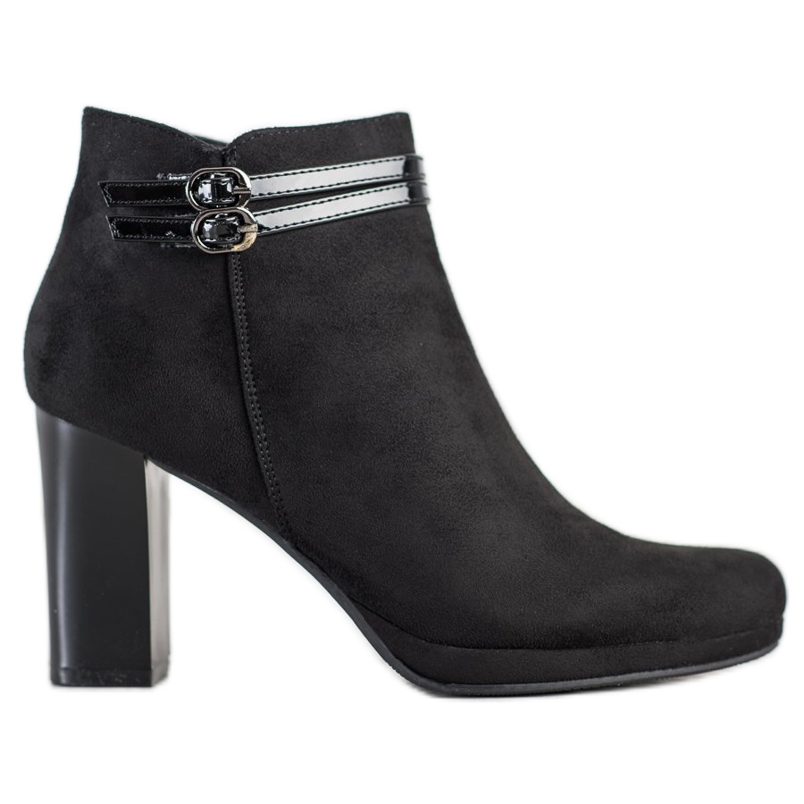 Otkrijte eleganciju i udobnost uz M.Daszyński crne gležnjače koje će postati savršena nadopuna vašoj kolekciji obuće. Ove prekrasne čizme na visoku petu, koje sežu malo iznad gležnja, zasigurno će privući pozornost na svakoj zabavi. Izrađene od visokokvalitetne antilop kože, imaju elegantnu završnu obradu koja im daje jedinstven stil.