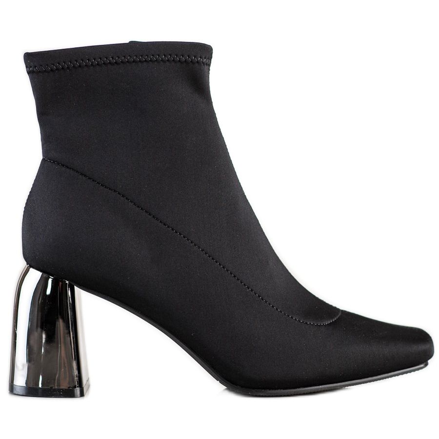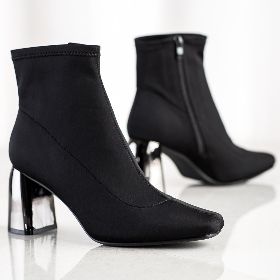 Elegantne gležnjače na visoku petu brenda M.Daszyński savršen su izbor za žene koje cijene stil, eleganciju i udobnost nošenja. Izrađene od visokokvalitetnog tekstilnog materijala, ove gležnjače karakterizira minimalistički dizajn u klasičnoj crnoj boji, što ih čini univerzalnim elementom svake garderobe.