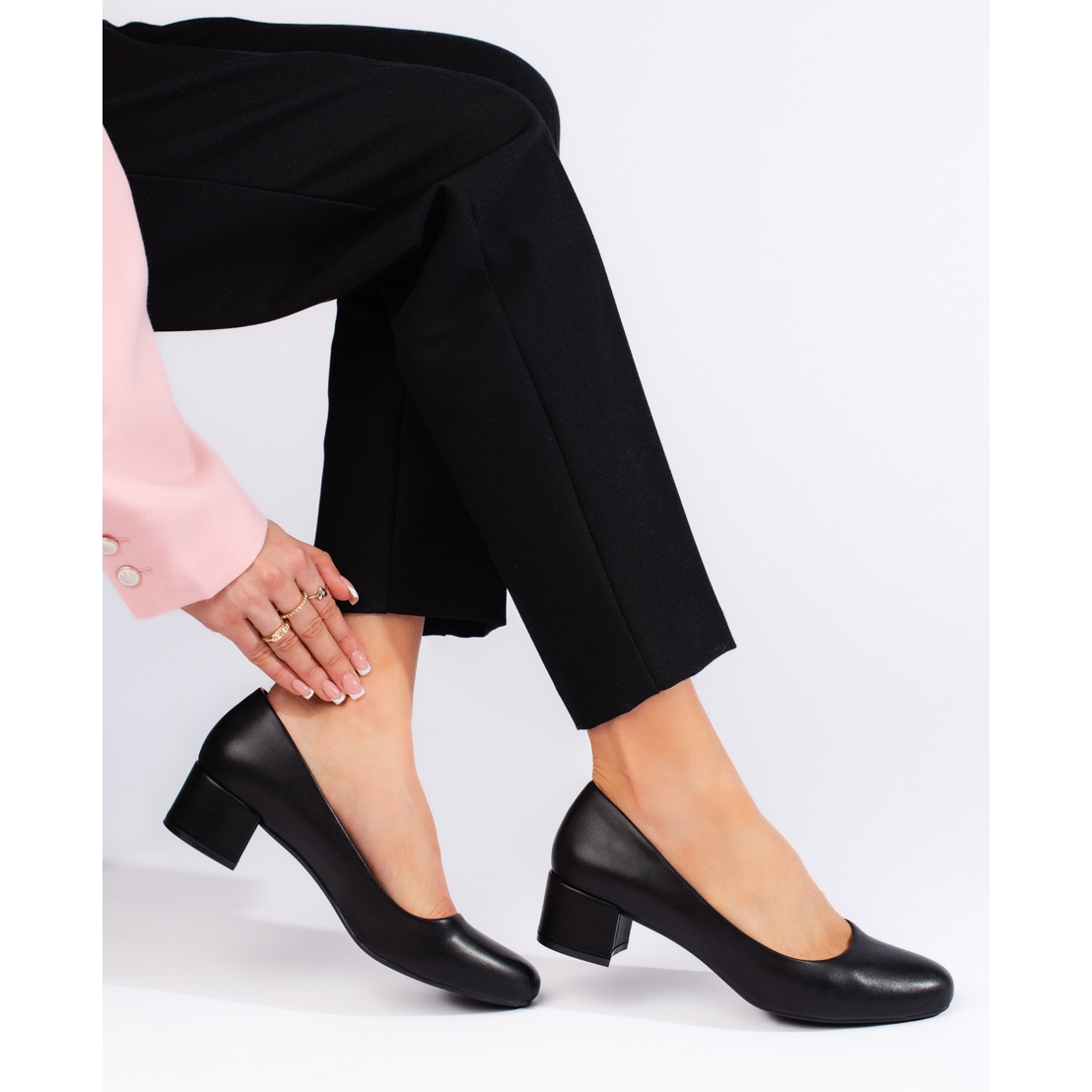 Niski post s visinom od 5 cm čini ove cipele savršene i svakodnevno i na raznim vrstama proslava. Zahvaljujući glatkom plastičnom potplatu, pumpe su stabilne i osiguravaju sigurnost. Njihova univerzalna, crna boja lako ih sastavljate s raznim stilizacijama - od ležernih do elegantnih.