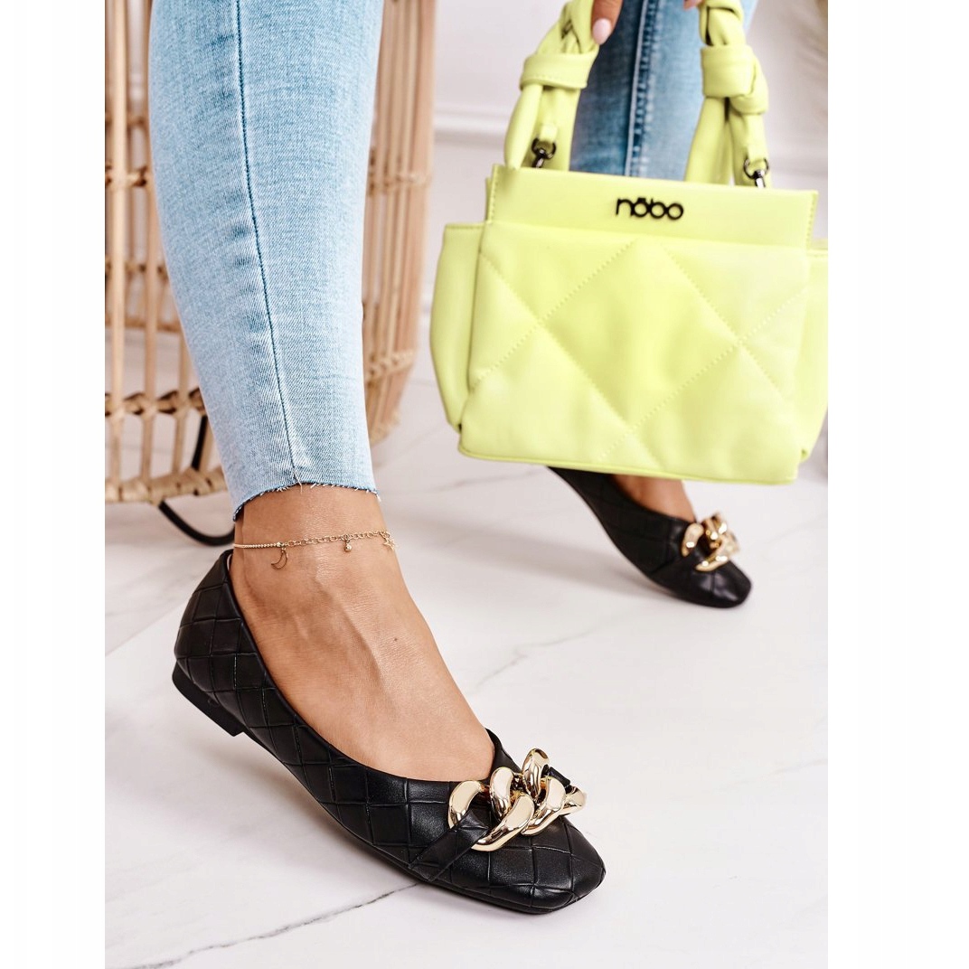 Pojedinosti: PS1 Elegantne crne Coco prošivene balerinke s lancem crna