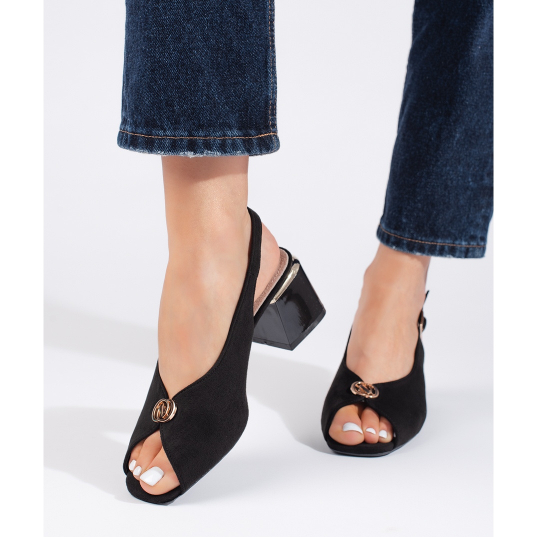 Elegantne crne sandale od brušene kože na visoku petu crna