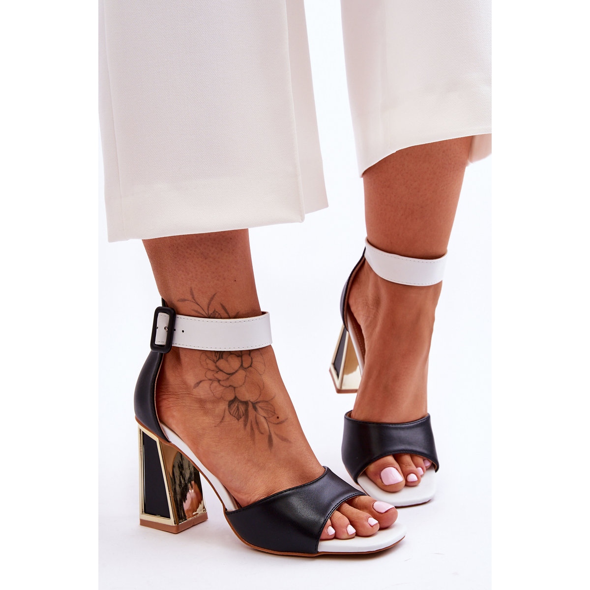 Pojedinosti: Elegantne crno-bijele sandale na visoku petu crna