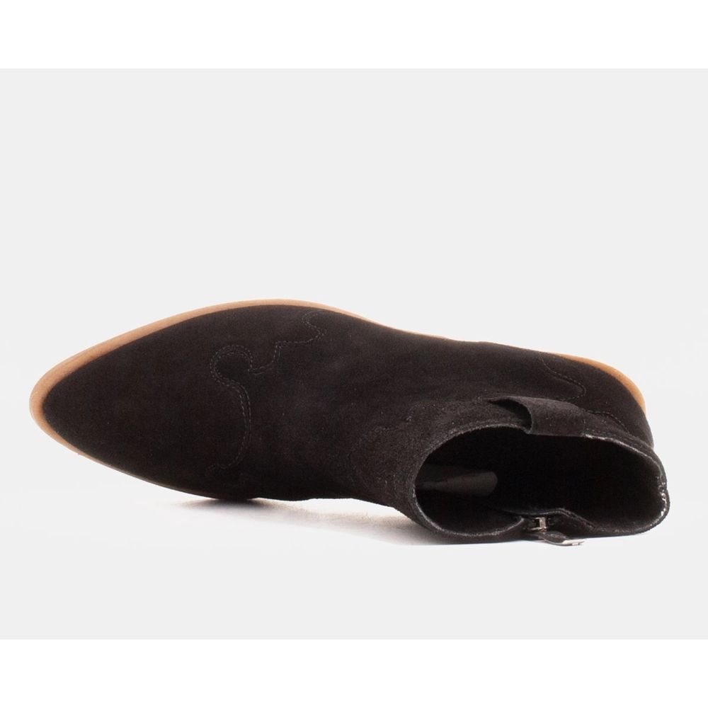 Moderne, bezvremenske kaubojske čizme Marco cipele izrađene od prirodne kože visokog kvaliteta (antilop) - savršene na dnevnoj osnovi i za posebne prigode. Model gležnja s niskom, stabilnom blokom (4 cm) pete kombinira udobnost s modernim, ženskim naglaskom. Bademovi nožni prst i glatki, minimalistički gornji dio čine cipele odgovaraju trapericama i haljinama.