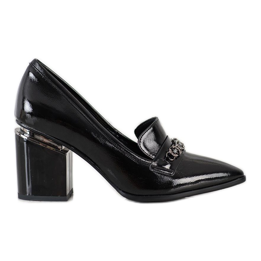 S. BARSKI Elegantne crne lakirane salonke savršen su izbor za svaku ženu koja svom izgledu želi dodati eleganciju. Ove unikatne cipele izrađene od visokokvalitetnog materijala koji imitira prirodnu kožu zasigurno će privući pozornost svojim jedinstvenim stilom. Crno, lakirano gornjište, ukrašeno suptilnim cirkonima, daje cipelama šik i otmjenost, što ih čini savršenim za ceremonije i večernje zabave.