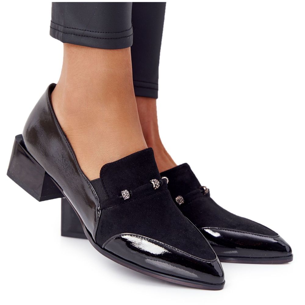 Elegantne S. Barski Premium salonke na visoku petu u crnoj boji savršen su izbor za žene koje cijene stil i udobnost. Ove cipele, koje pripadaju renomiranoj S. Barski PREMIUM COLLECTION D&A kolekciji, pažljivo su izrađene od kombinacije lakirane eko kože i eko brušene kože, što im daje jedinstven karakter.