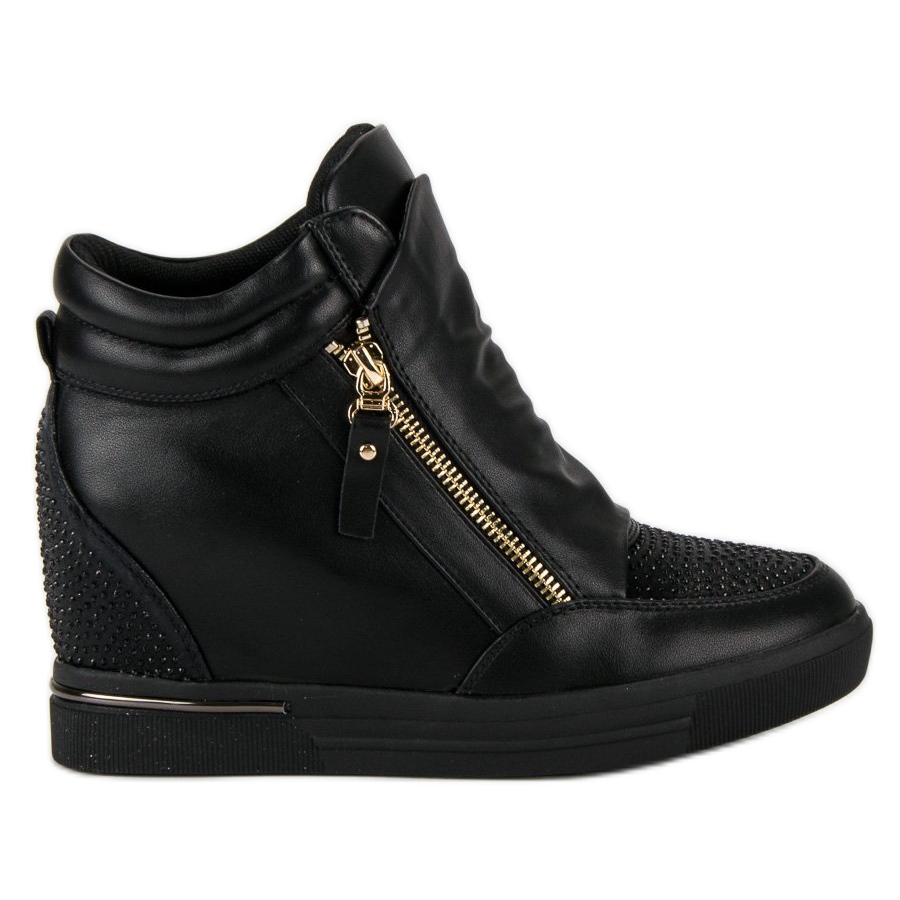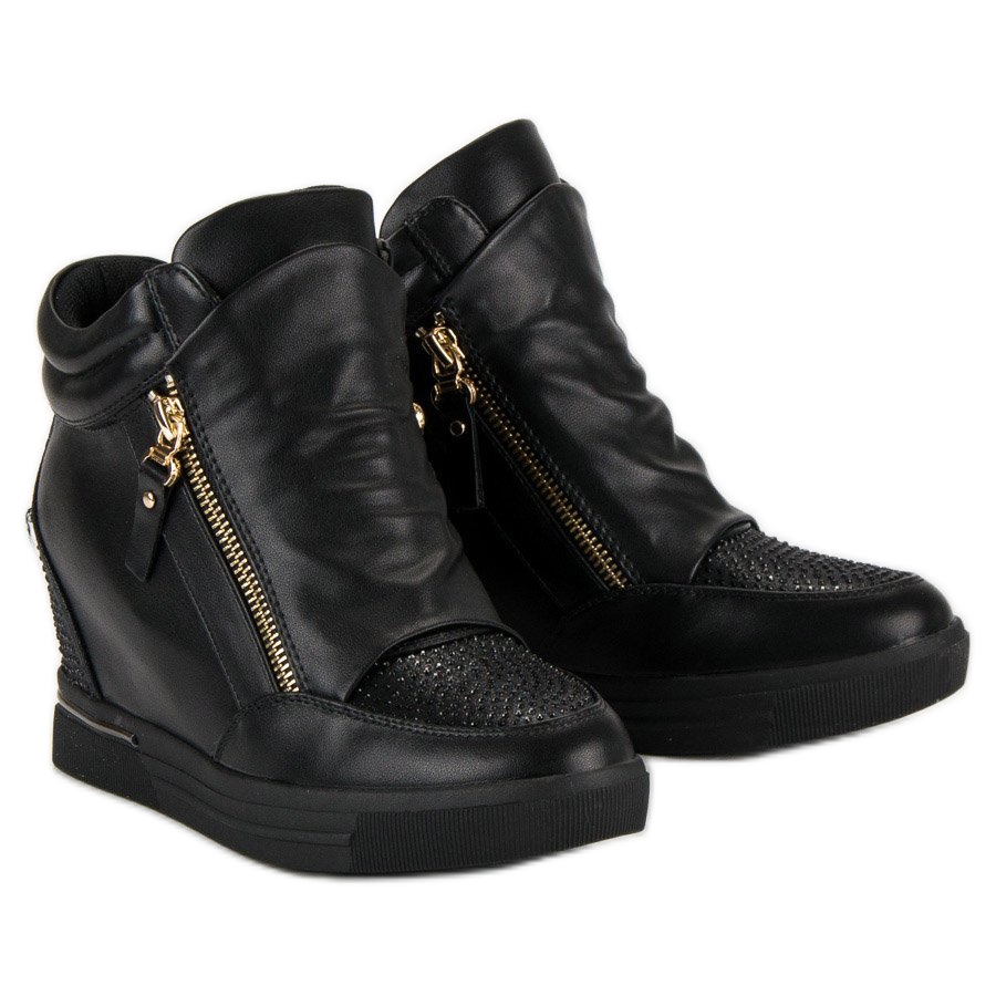 Moderne crne tenisice opremljene su praktičnim patentnim zatvaračem koji ih čini jednostavnim za obuvanje. Dodatni ukras su kamenčići u obliku kristala postavljeni na vrh i petu cipele, privlačeći pažnju i naglašavajući njihov jedinstveni karakter. Guma korištena u potplatu osigurava odgovarajuće prianjanje, a lagana konstrukcija čini ga ugodnim za nošenje tijekom cijelog dana.