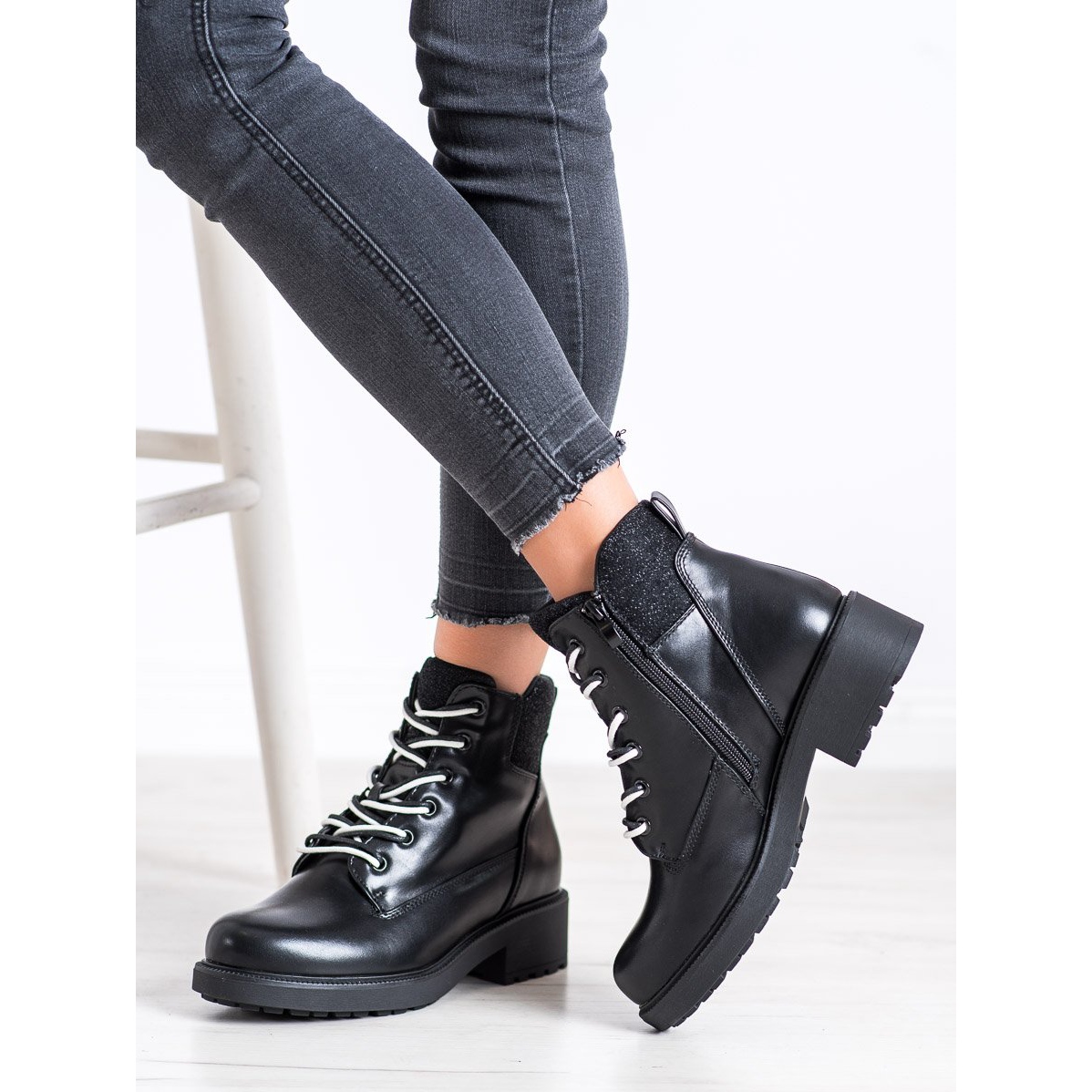 Pojedinosti: SHELOVET Elegantne zavezane čizme crna