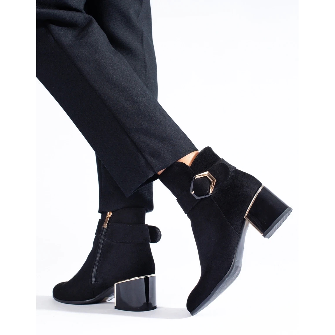 Pojedinosti: Elegantne ženske gležnjače na nisku petu od ekološkog antilopa crna