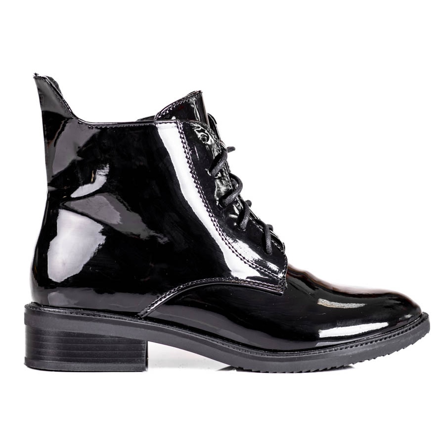 Elegantne ženske Shelovet čizme na vezanje od lakirane ekološke kože crna