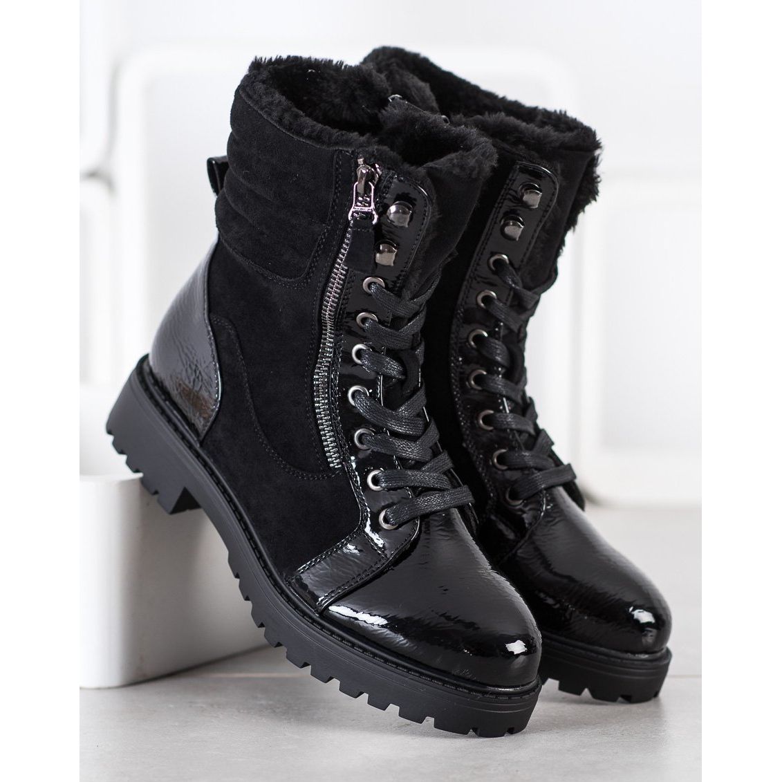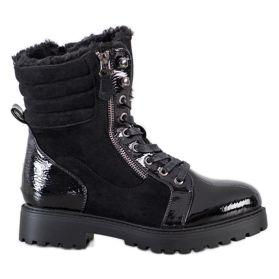 Izrađene od visokokvalitetnih materijala, čizme imaju gornjište od ekološke kože i mekani tekstilni unutarnji materijal koji jamči udobnost nošenja. Crni, lakirani završetak daje im elegantan karakter, a okrugli vrh i izgrađena, mekana peta osiguravaju savršeno pristajanje i udobnost.