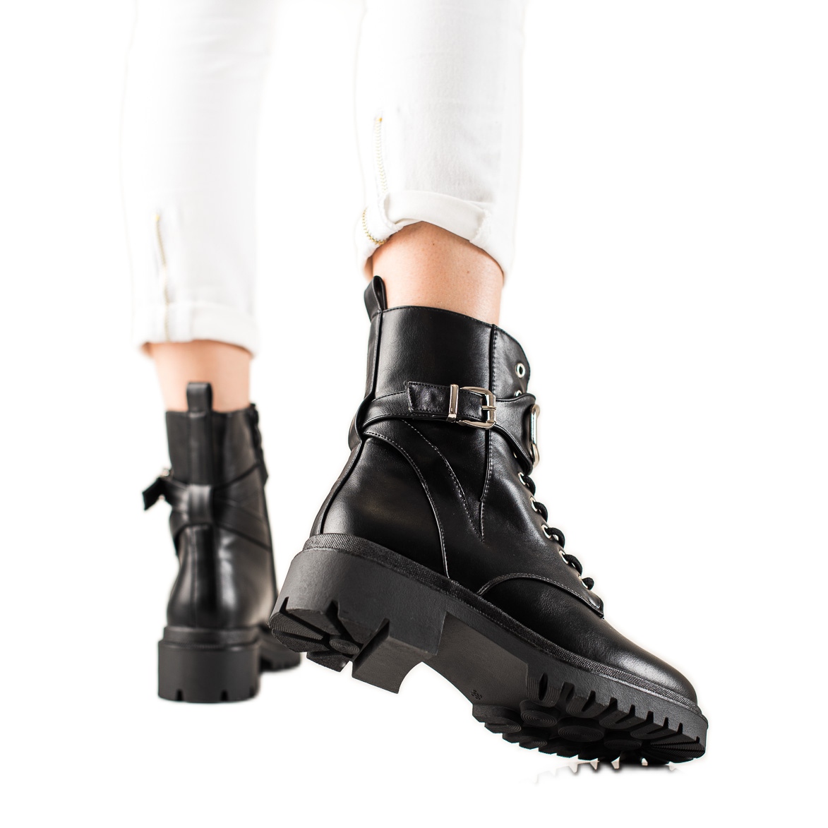 - **Funkcionalnost**: Radni dijelovi s patentnim zatvaračima i vezicama savršeno pristaju uz nogu. Ugrađena, ukrućena peta osigurava stabilnost i udobnost korištenja.