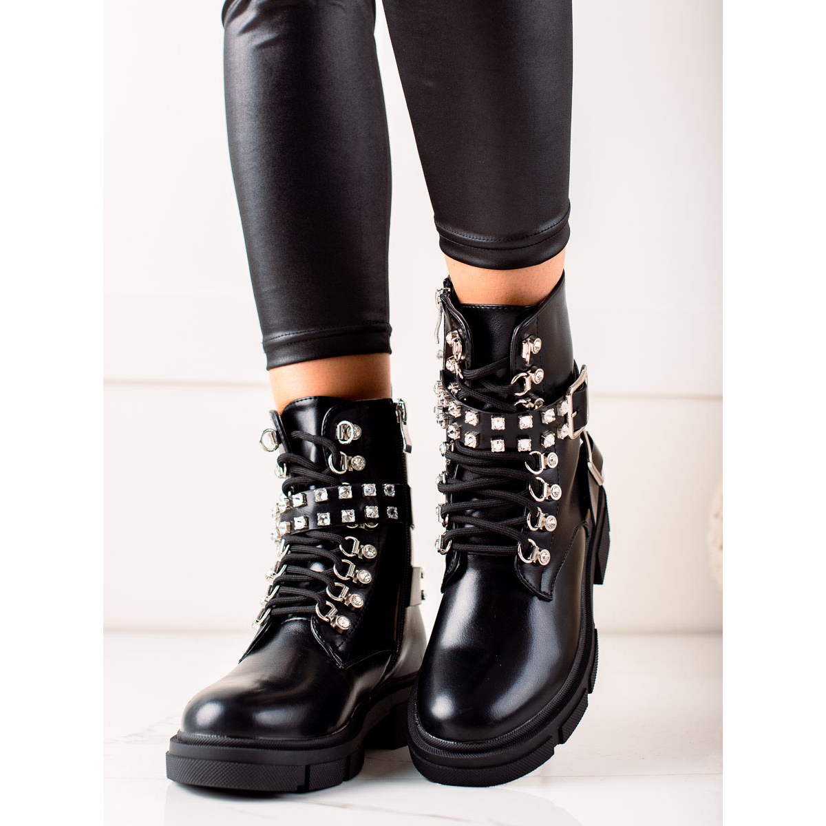 Otkrijte novu dimenziju stila uz TRENDI radnike! Ove moderne crne čizme savršen su izbor za svaku ženu koja traži kombinaciju udobnosti i rock karaktera. Izrađene od visokokvalitetne ekološke kože, jamče ne samo izvrstan izgled, već i udobnost nošenja.