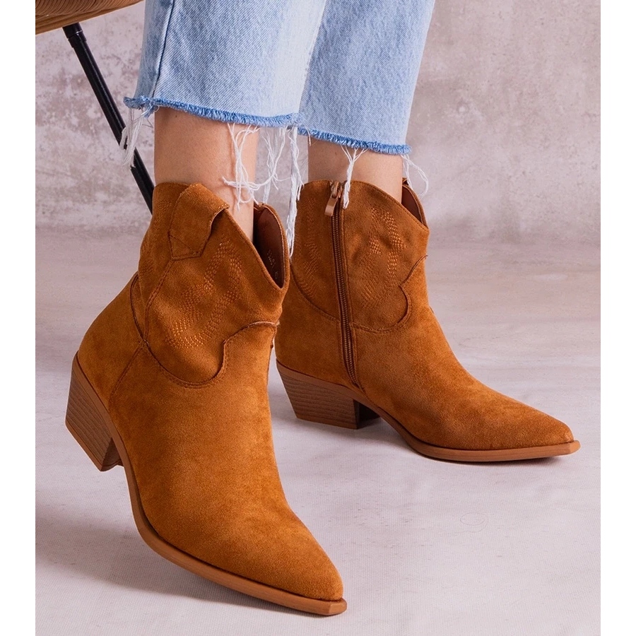 ### smeđe kaubojske čizme za gležanj erinne - keeshoes