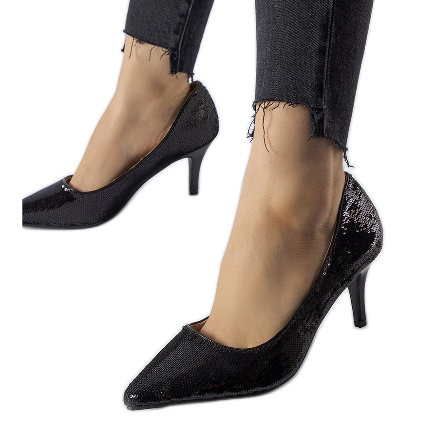 Peta visine 7 cm čini da noge izgledaju vitkije i duže, a vi da se osjećate ženstveno i senzualno. Crna boja i završni sloj sa šljokicama čine ove cipele savršenim kako za posebne prilike tako i za svakodnevne sastanke kada svom izgledu želite dodati malo sjaja.
